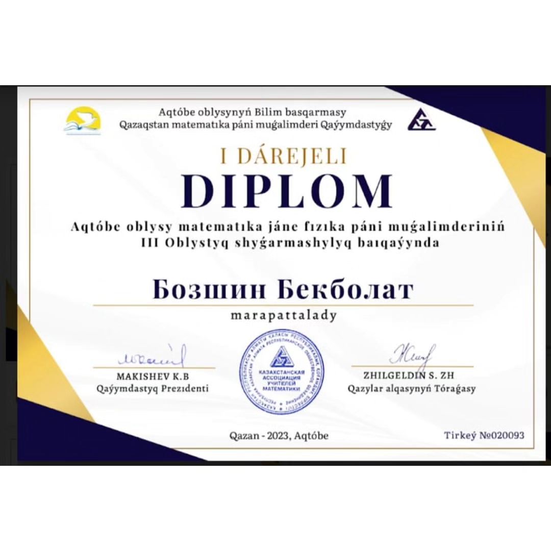 Ақтөбе облысы математика және физика пәні мұғалімдерінің ІІІ шығармашылық байқауында І дәрежелі диплом иеленген Бозшин Бекболат Жагалбайлиевичті құттықтаймыз.