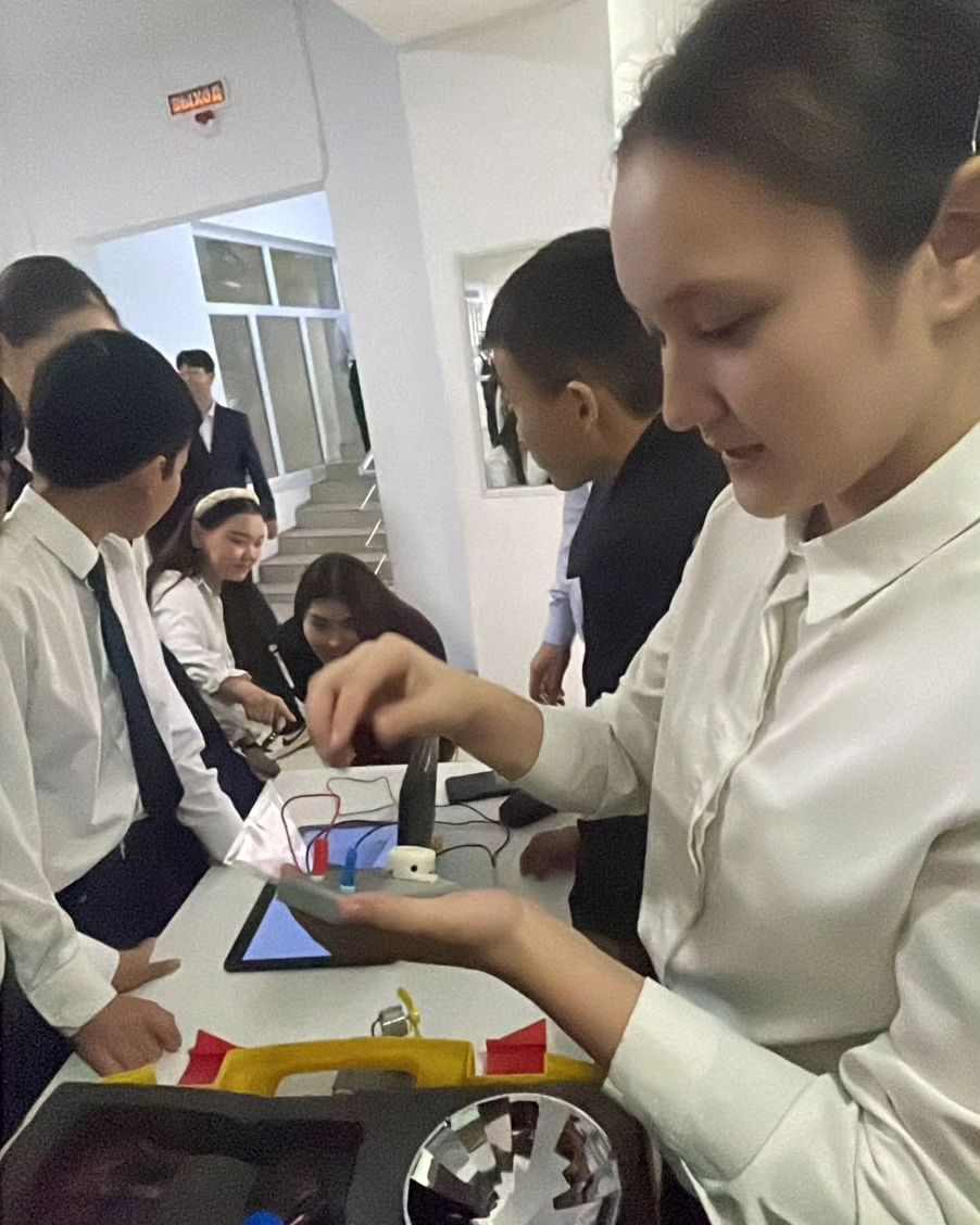 ИФМ апталығы аясында физика пәні мұғалімдерінің ұйымдастыруымен үзіліс кезінде эксперименттік алаң өткізілді. Оқушылар физикалық тәжірибелерді қызыға көрсетті
