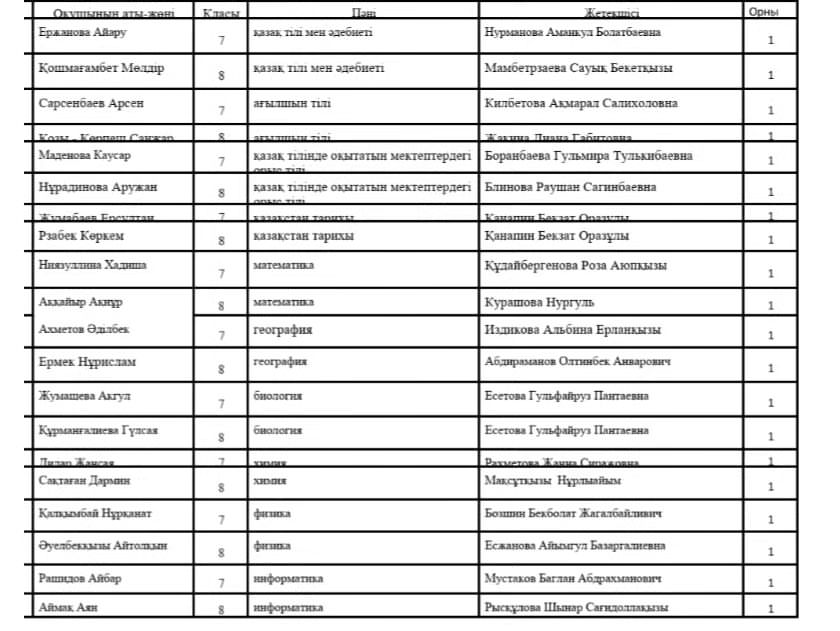 1- орынға ие болған оқушыларды қалалық кезеңге қатыстыруға сұраныс берілді.Жүлделі орынға ие болған оқушыларға сәттілік!