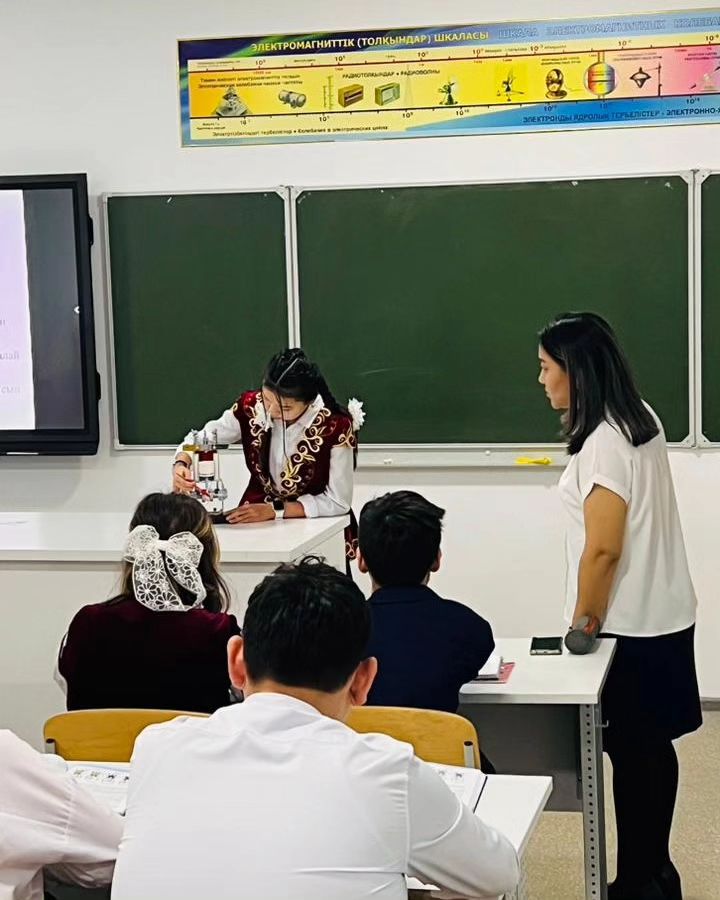 17.11 күні ИФМ апталығы аясында физика пәнінің мұғалімі А.Б.Есжанова 8а сыныбында “Жылу қозғалтқыштарының ПӘК-і” тақыбырында ашық сабақ өткізді. Сабақта әр түрлі әдіс-тәсілдерді қолдана отырып, жеке, жұптық жұмыс түрлері жүргізілді. Оқушылар сабаққа белсенділікпен атсалысып, өз білімдерін көрсетті.