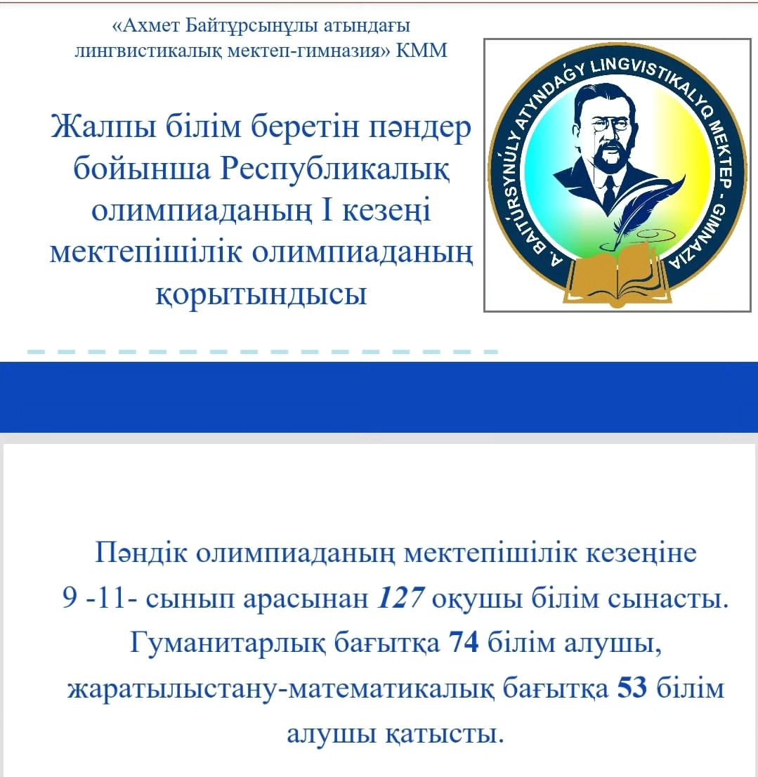 Жалпы білім беретін пәндер бойынша Республикалық олимпиаданың мектепішілік кезеңі бойынша қорытынды