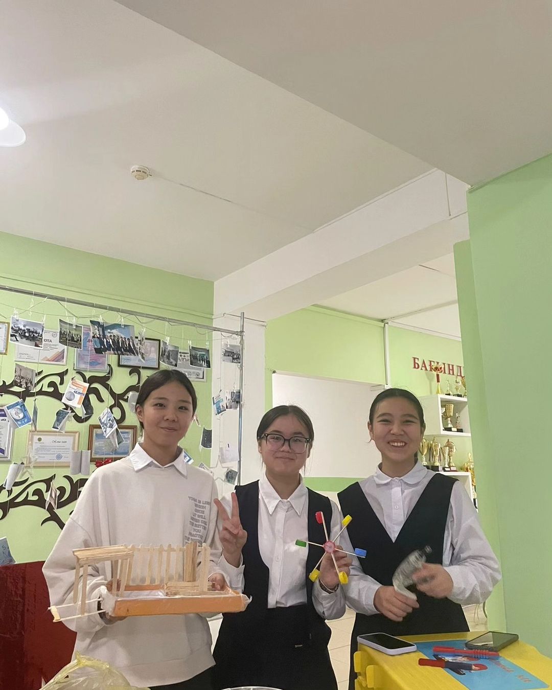 ИФМ апталығы аясында физика пәні мұғалімдерінің ұйымдастыруымен үзіліс кезінде эксперименттік алаң өткізілді. Оқушылар физикалық тәжірибелерді қызыға көрсетті