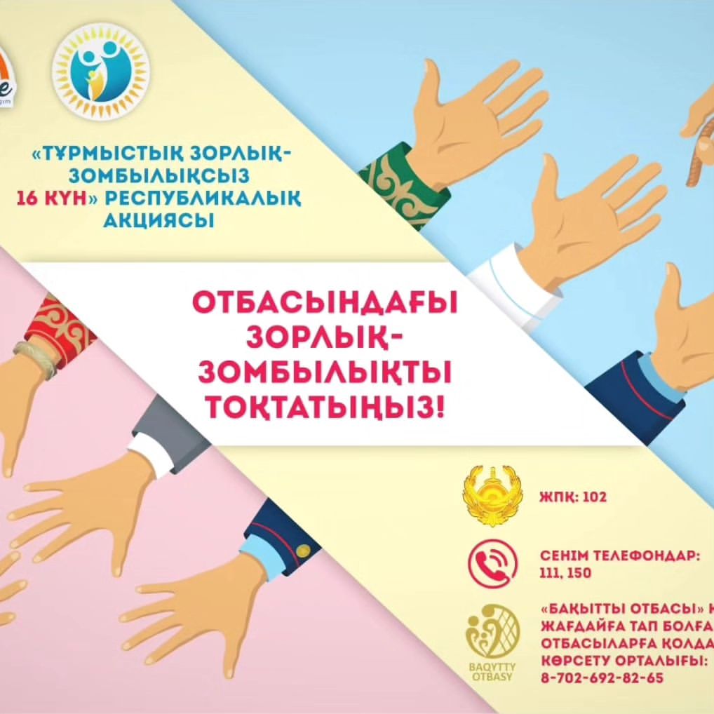 "Жеткіншектің жеті жарғысы" жобасы аясында мектеп-гимназияның Еріктілер тобы мүшелері көп қабатты мектеп-гимназия ауданына қарасты тұрғын үйлердің хабарландыру тақталарына "Тұрмыстық зорлық-зомбылыққа қарсы" акпараттық
