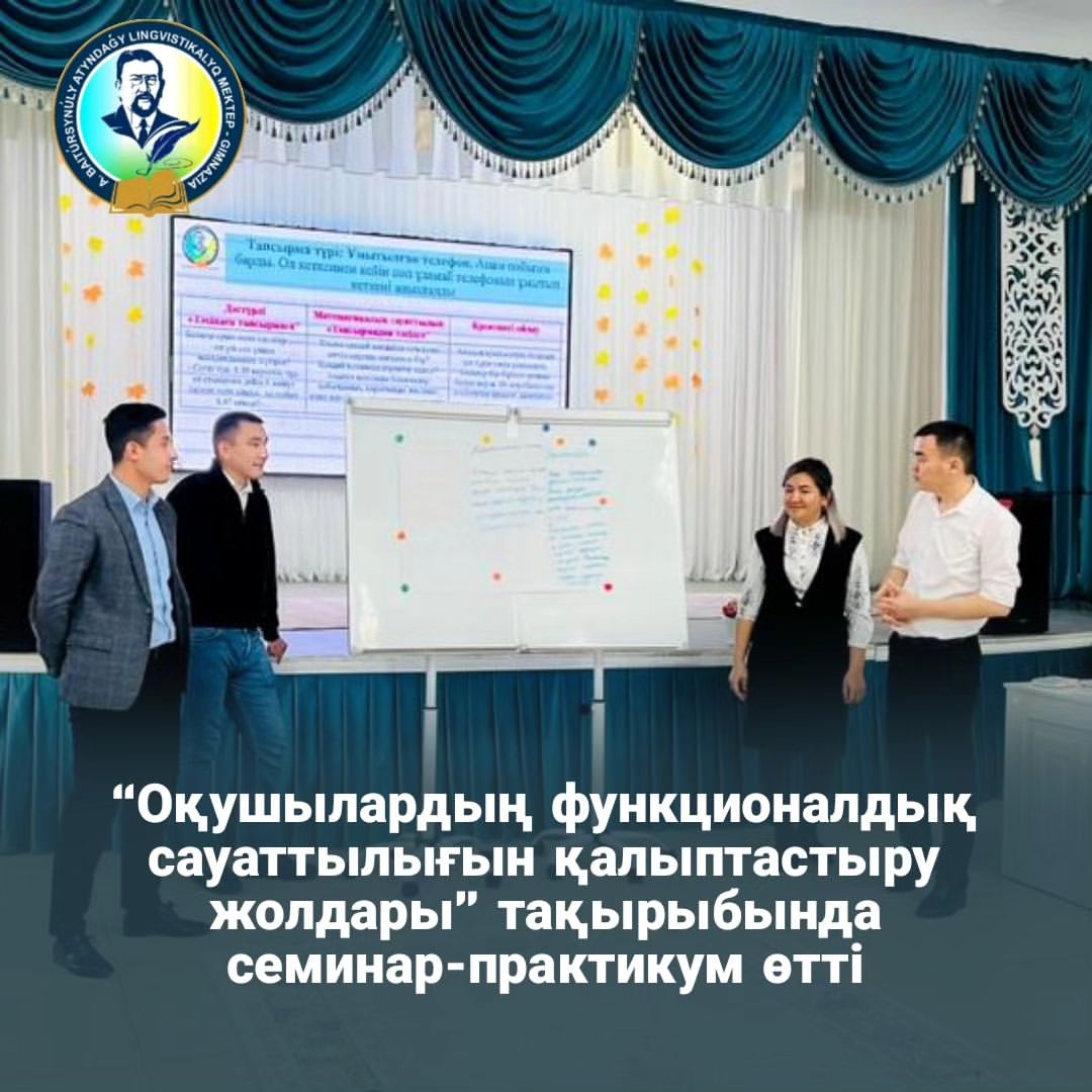 30.10.2023 күні А.Байтұрсынұлы атындағы ЛМГ жұмыс жоспарына сәйкес “Оқушылардың функционалдық сауаттылығын қалыптастыру жолдары” тақырыбында семинар-практикум өтті.