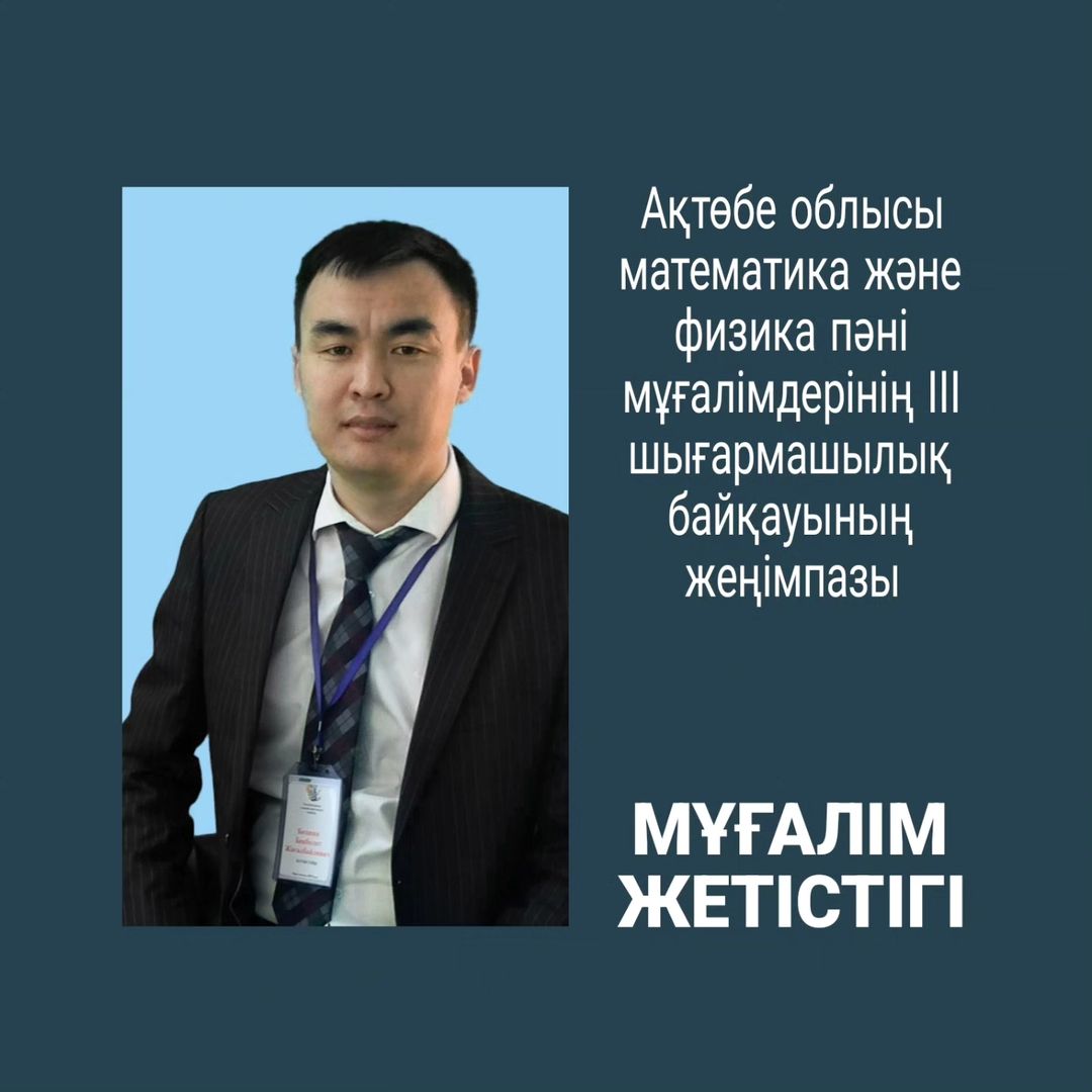 Ақтөбе облысы математика және физика пәні мұғалімдерінің ІІІ шығармашылық байқауында І дәрежелі диплом иеленген Бозшин Бекболат Жагалбайлиевичті құттықтаймыз.