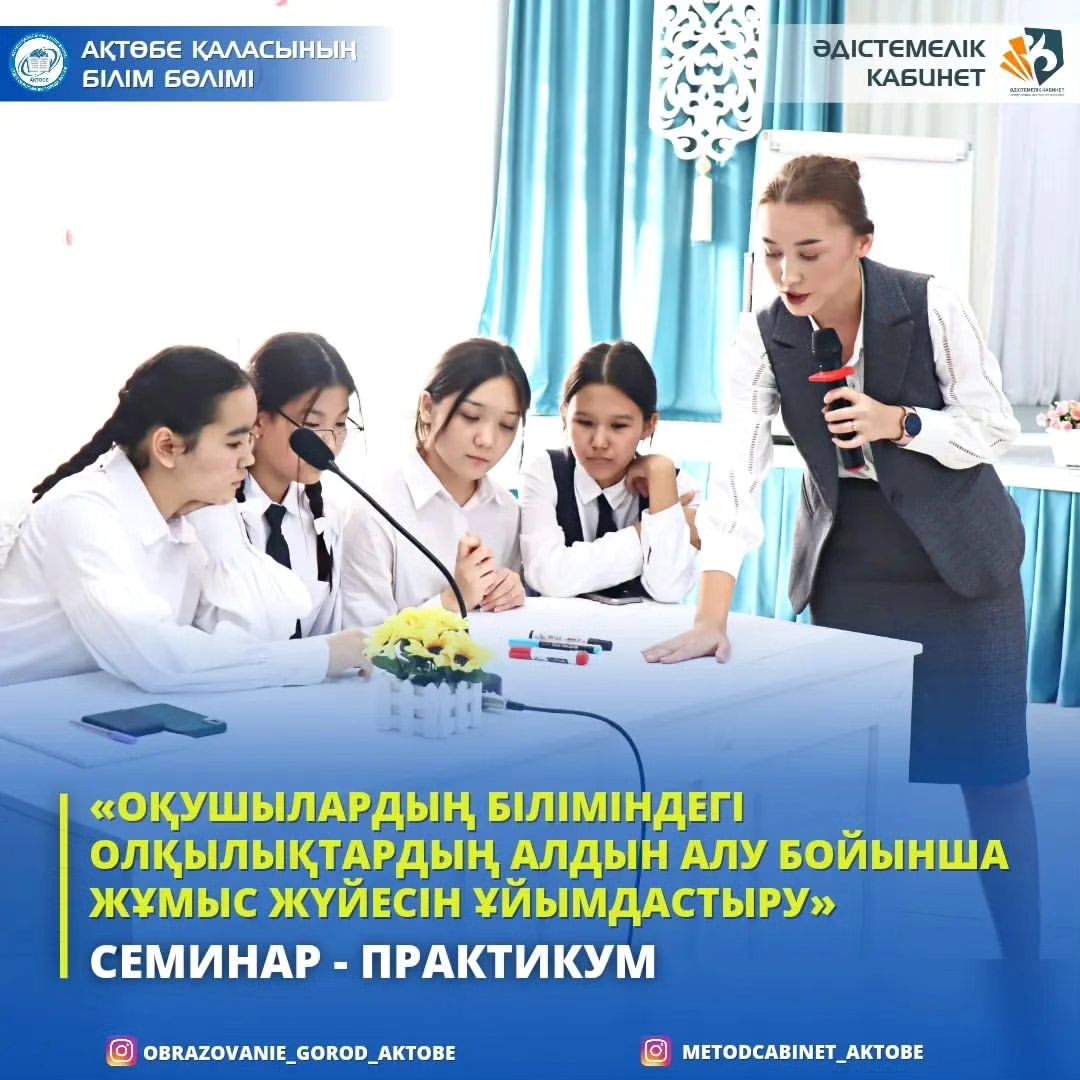 РЕПОСТ @obrazovanie_gorod_aktobe 19 қазан күні "Ақтөбе қаласының білім бөлімі" ММ "Әдістемелік кабинет" КММ жоспарына сәйкес "Ахмет Байтұрсынұлы атындағы лингвистикалық мектеп-гимназиясы" КММ –де "Оқушылардың біліміндегі олқылықтардың алдын алу бойынша жұмыс жүйесін ұйымдастыру", "Алгебра бойынша алғашқы сынақ тексеру жұмыстарын жүргізу (8 сынып)", "Алгебра бойынша сынақ жұмысын талдау" семинар-практикумы өткізілді.