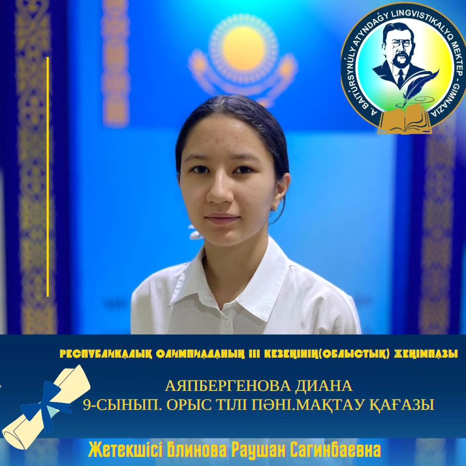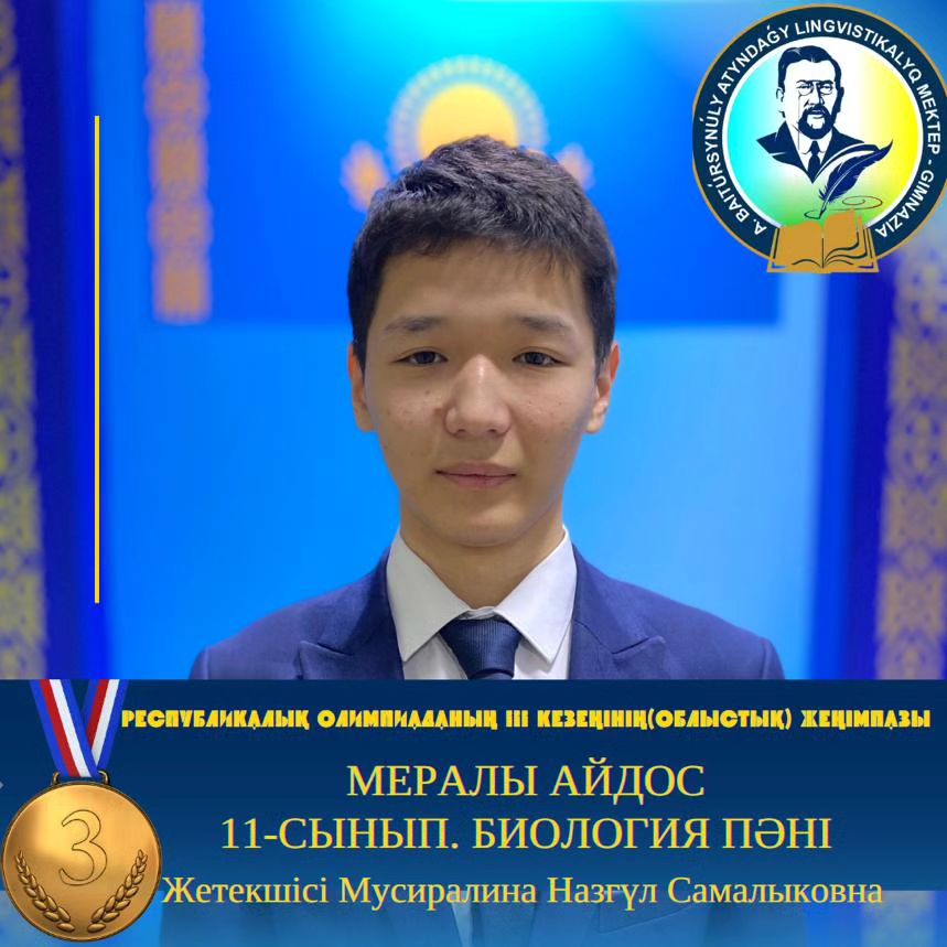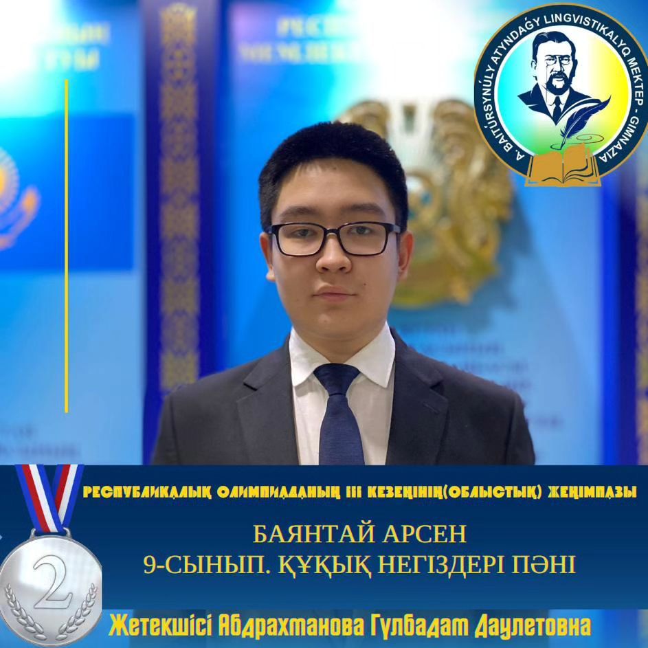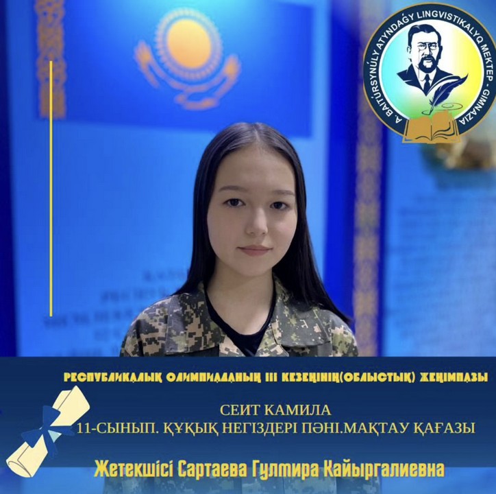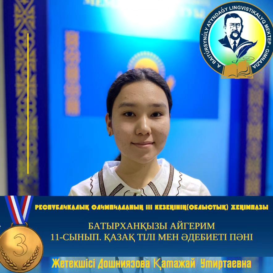 🏆Жалпы білім беретін пәндер бойынша республикалық олимпиаданың облыстық кезеңінің жеңімпазы