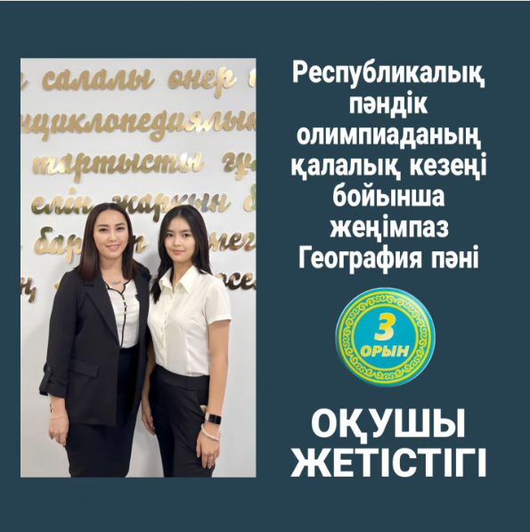 🥉Республикалық пәндік олимпиаданың қалалық кезеңінен география пәні бойынша 3-орын иеленген Серикбаева Дильназ 10 ”Ә” сынып оқушысы