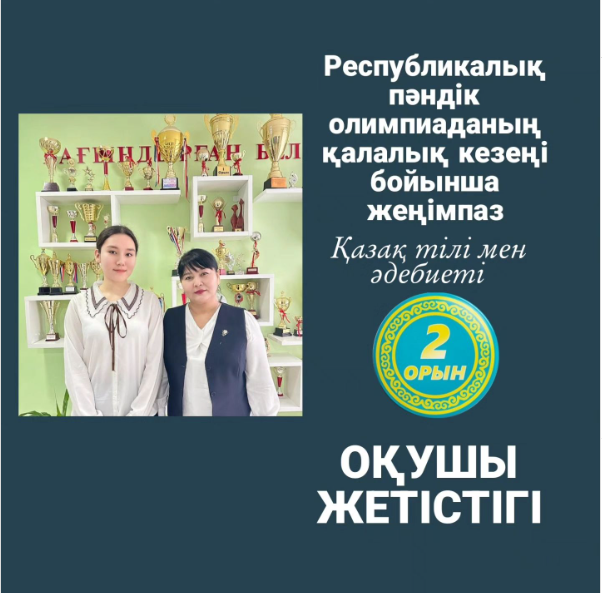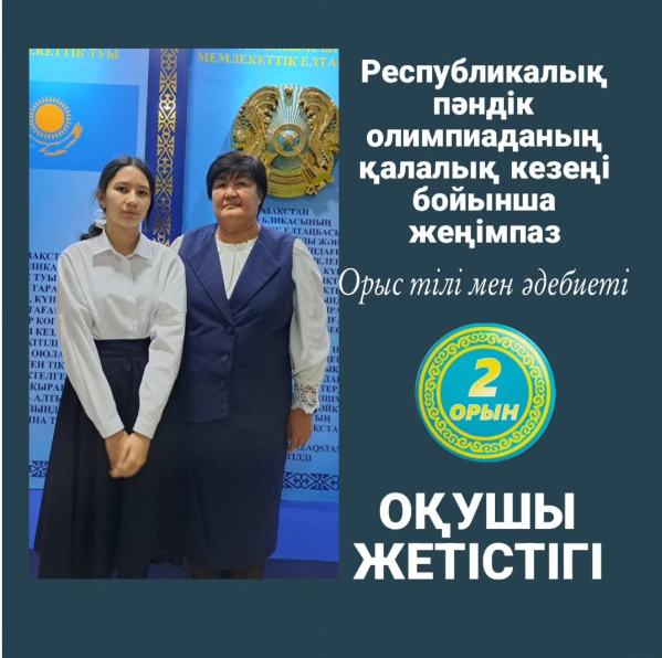 🥈Республикалық пәндік олимпиаданың қалалық кезеңінен орыс тілі және әдебиет пәні бойынша 2- орын иеленген Аяпбергенова Диана 8 ”Ә ” сынып оқушысы