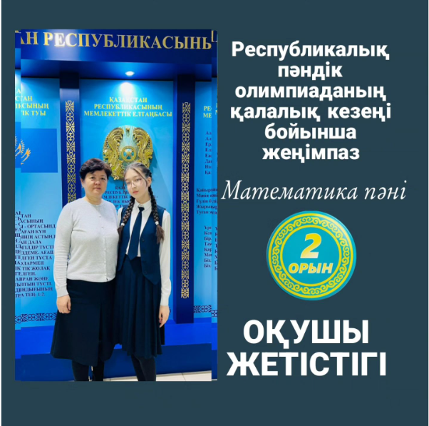 🥈Республикалық пәндік олимпиаданың қалалық кезеңінен математика пәні бойынша 2- орын иеленген Дербісәлі Толғанай 10 “Б” сынып оқушысы